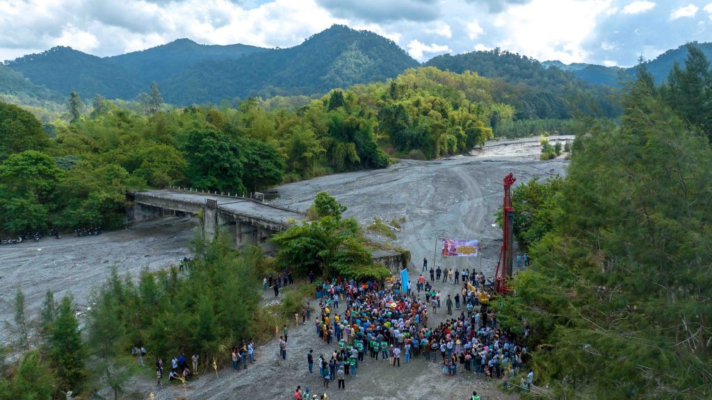 MANATUTO, 02 Agostu 2025 – Primeiru-Ministru (PM), Kay Rala Xanana Gusmรฃo, akompaรฑa hosi Ministru Obras Pรบblikas (MOP), Samuel Marรงal, realiza serimรณnia hatuur fatuk da-huluk hodi inicia konstrusaun ponte Lamara, iha suku Manehat, postu Natabora, Manatuto, iha loron sรกbadu (02/08/2025).