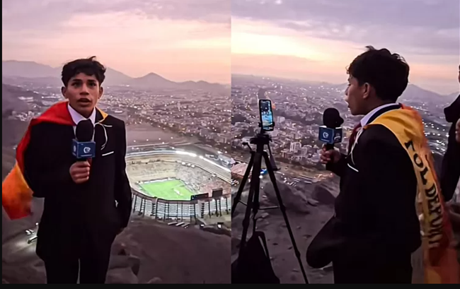 Iha kalan malirin ida iha Lima, Peru, lian maka’as hosi adeptu rihun ba rihun iha Estádiu Monumental eko iha distánsia. Maibé labarik-mane ida ho tinan 15 hamriik iha foho ki’ik ida nia leten, dook hosi lampu sira estádiu nian no kámara televizaun nian. Nia iha de’it tripé simples ida, nia telemovel, no mehi ida ne’ebé nia nunka abandona: atu sai komentadór futeból nian.